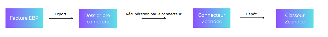 Zeendoc ont mit en place un connecteur qui vise à exporter une facture par exemple en la mettant dans un dossier préconfigurer, le connecteur vient prendre la facture dans le répertoire et vient l'intégrer directement dans Zeendoc suivant la configuration défini dans le connecteur.