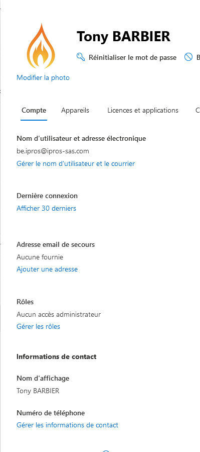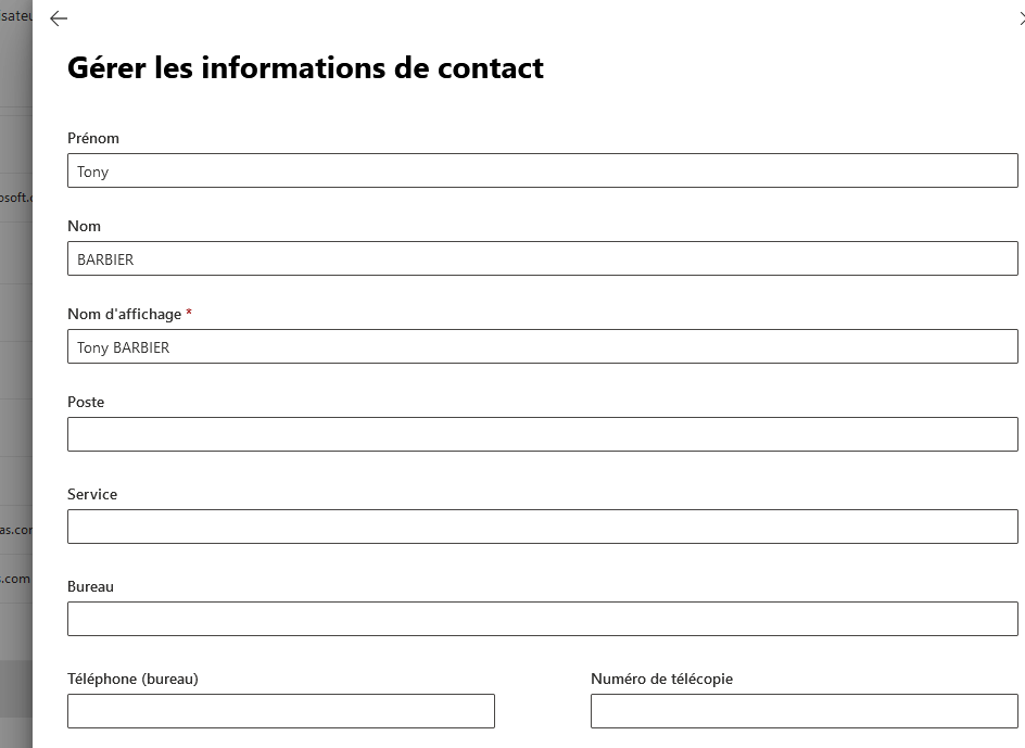 Sélectionnez la boîte mail concernée, puis allez dans la section compte => Gérer les informations de contact en bas de la page.