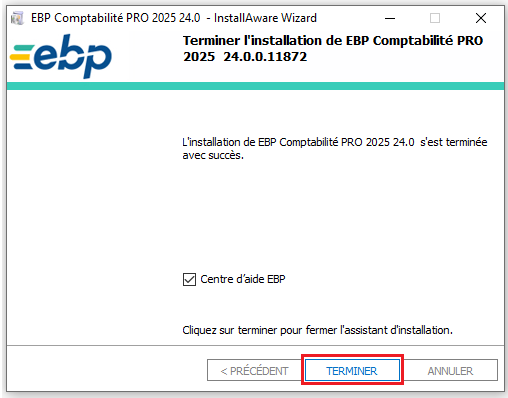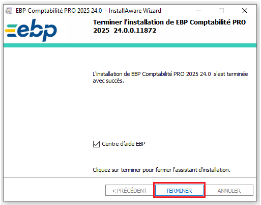 Cliquez sur le bouton Terminer pour fermer l'assistant :