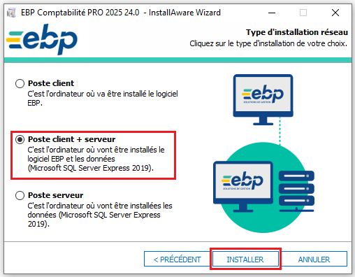 - Poste Serveur : permets seulement d'installer le moteur SQL sans installer le logiciel EBP.